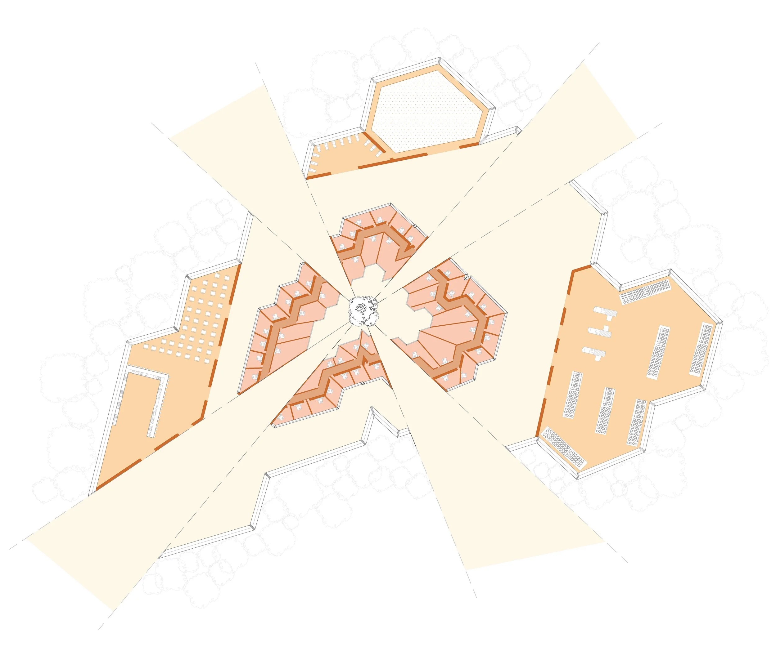 The deviation centralises around ‘Equalism’ as it incorporates fragments of the precedents to form an alternative dimension to the hotel typology using three precedents from the archive. The space includes counter-hegemonic aspects from Christiansholm using no 90-degree angle centralising around uniformity. The agonism from the Amsterdam Orphanage creates an alternative way of establishing equal order creating equal opportunity and access to all sites within the space. The ‘Solar House’ precedents add layers within the new typology to differentiate between public and private in a reverse order to standard typology, creating a reformed ‘Impartiality’ for all participants to enjoy a new experience and establishment. This deviation inspires the context and blueprint for Chandelier Lodge.